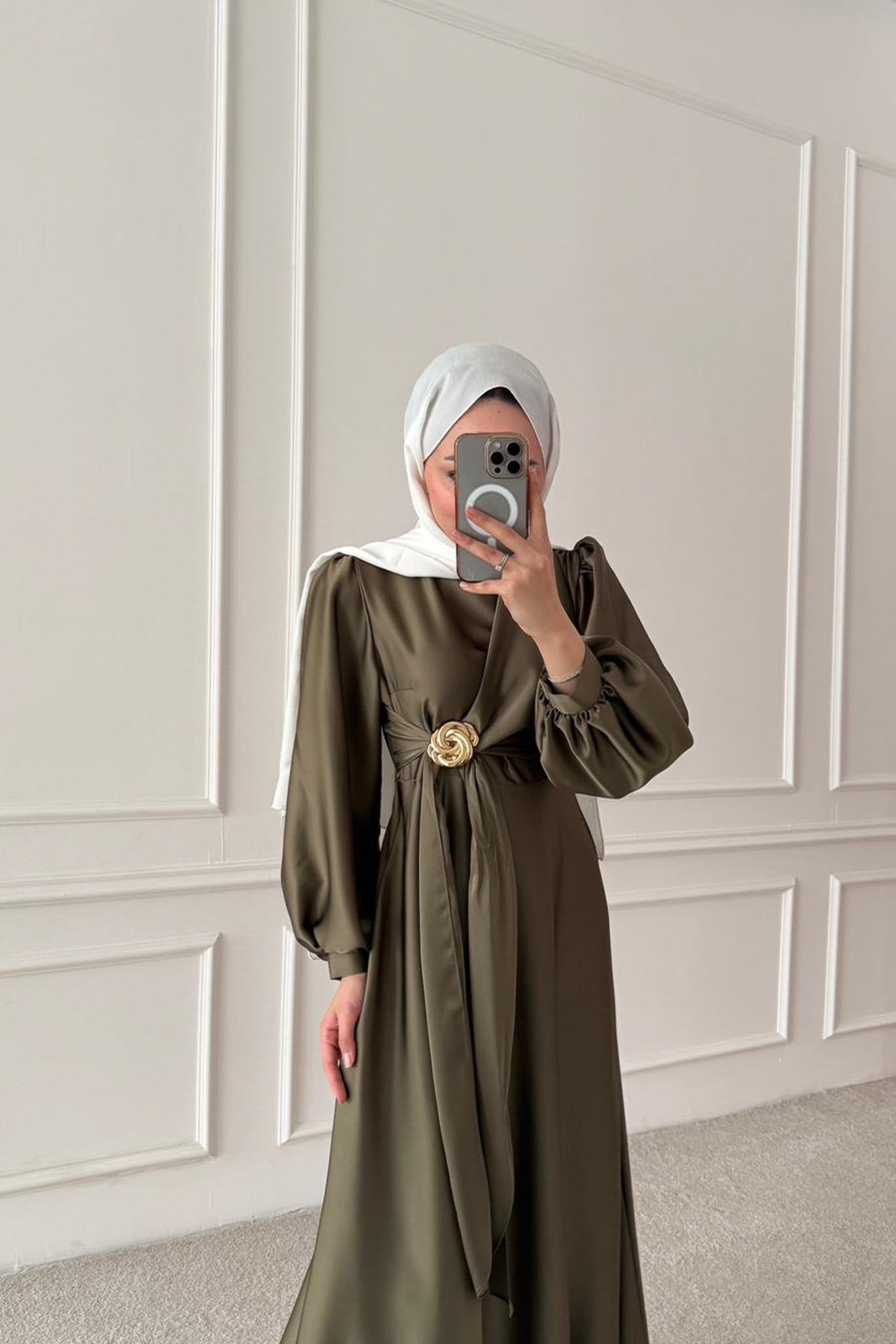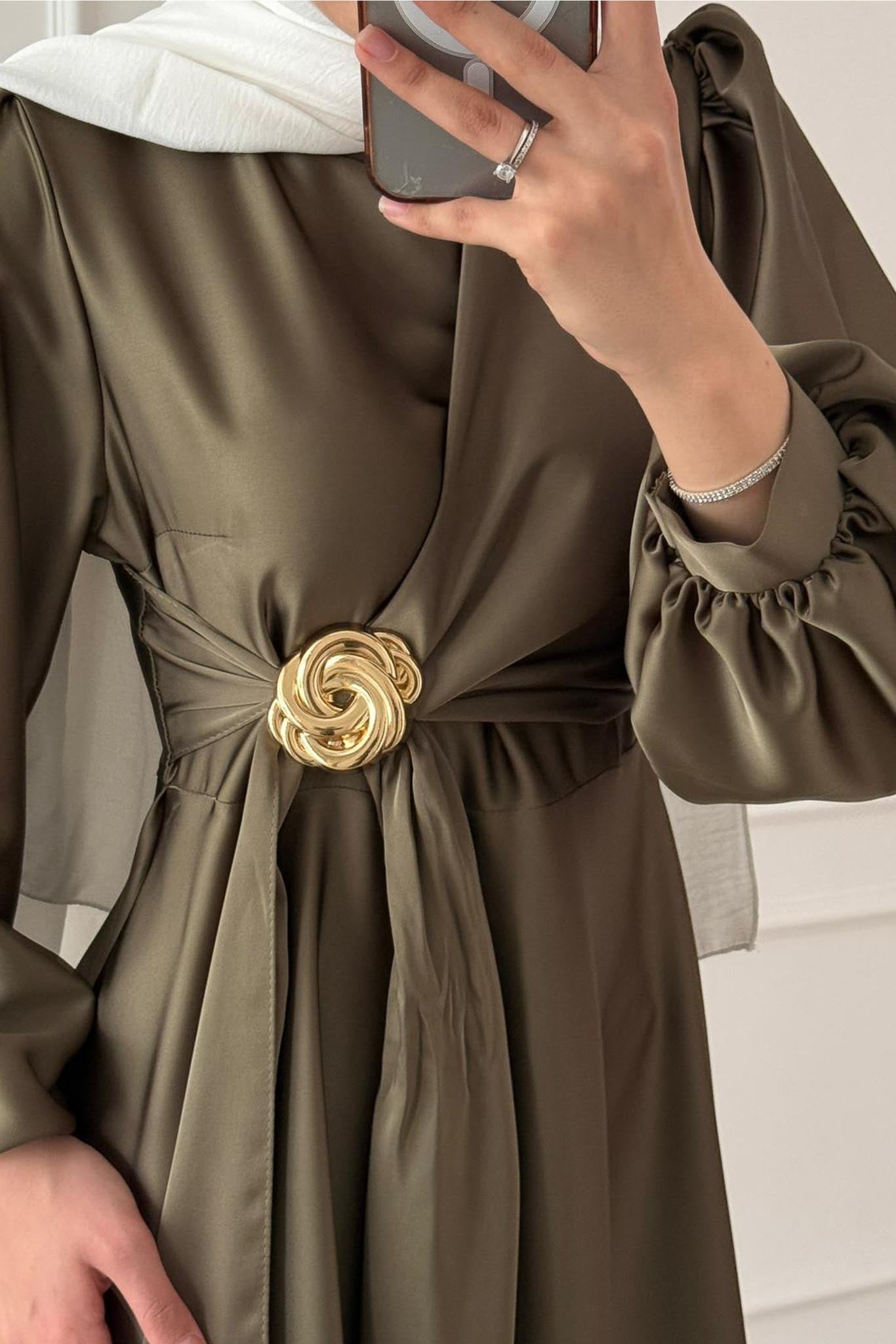 Şura Broş Saten Abiye Haki