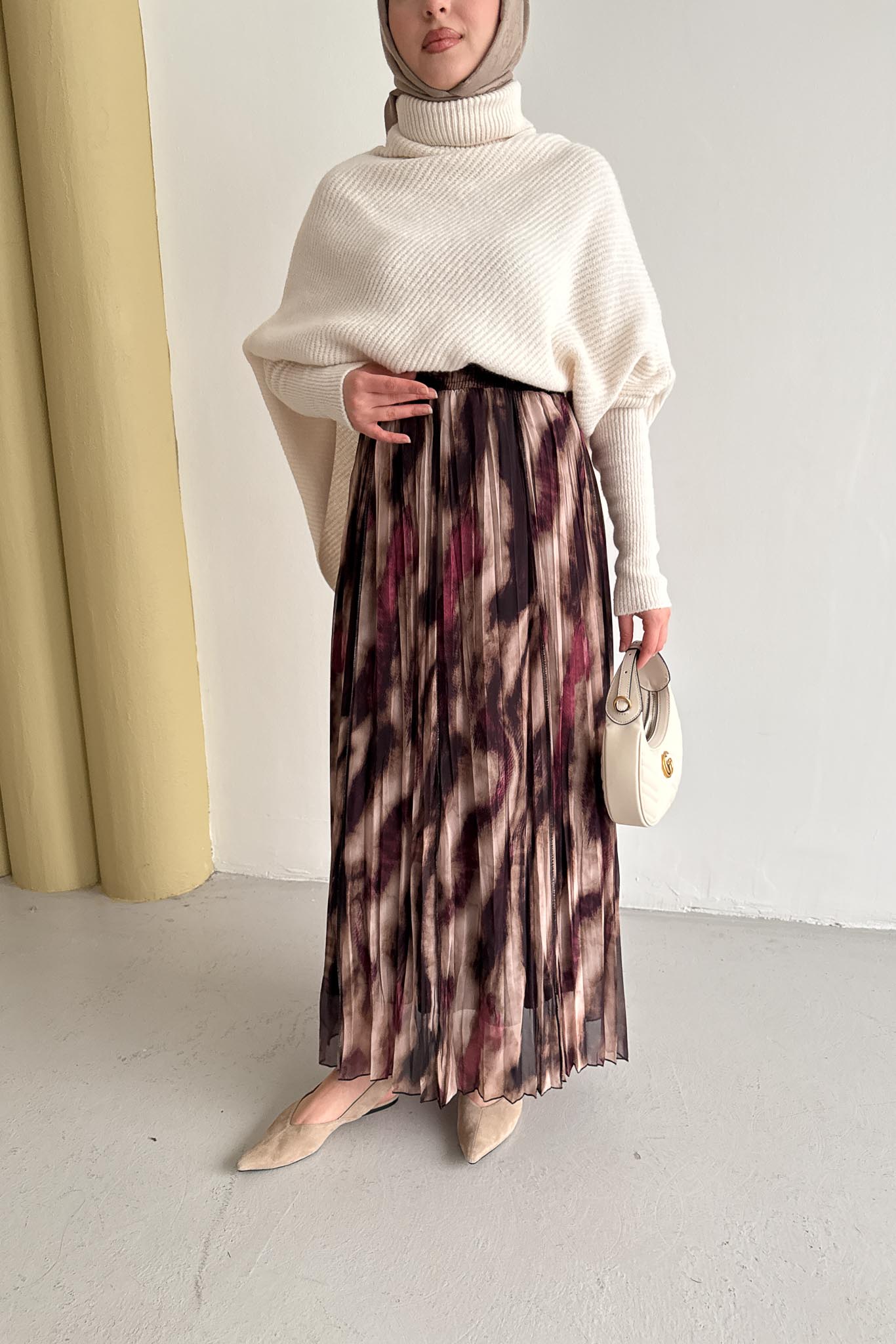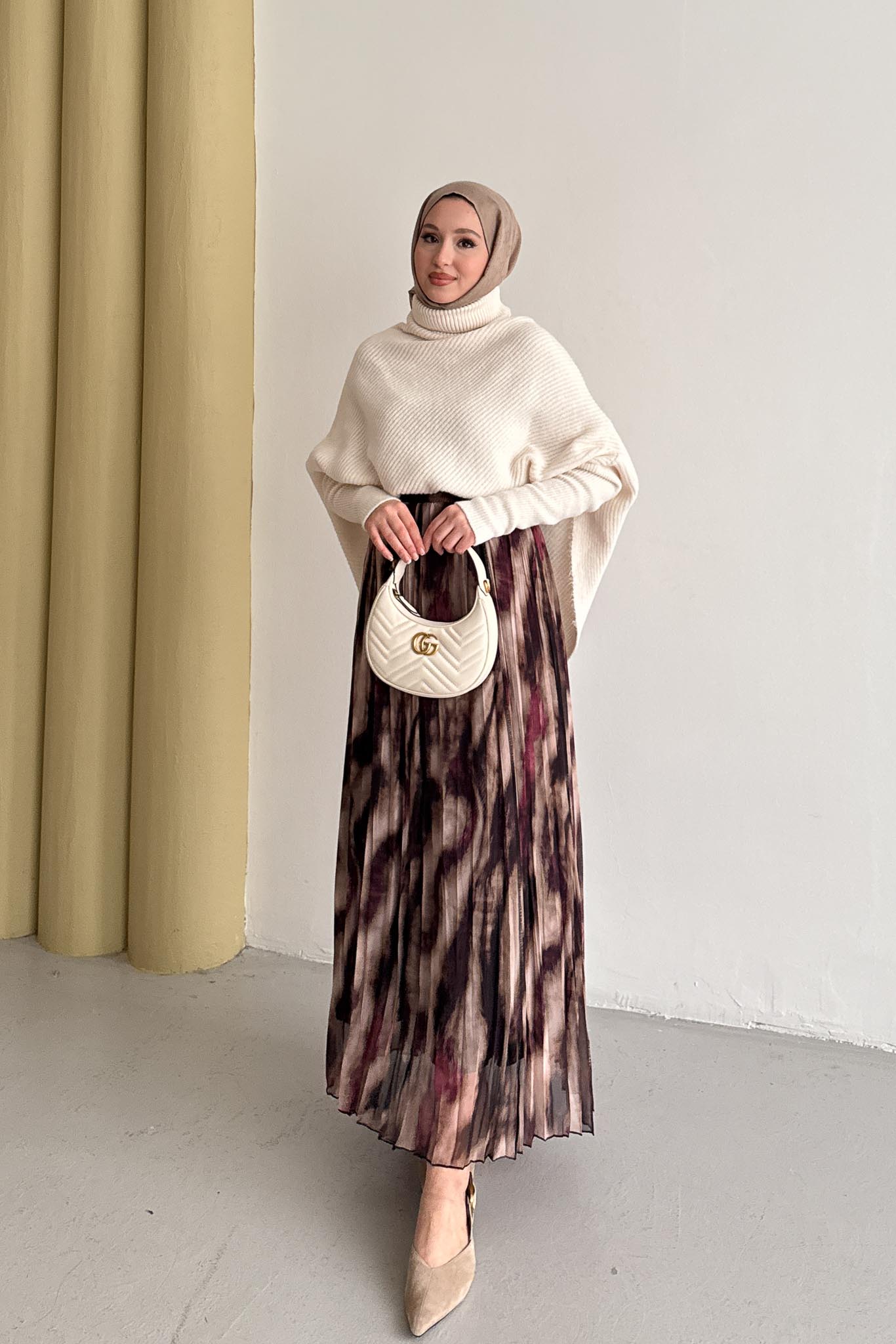 Etek Uzunluk : 100 cm, Beli lastiklidir, Plisole Kloş formdadır.