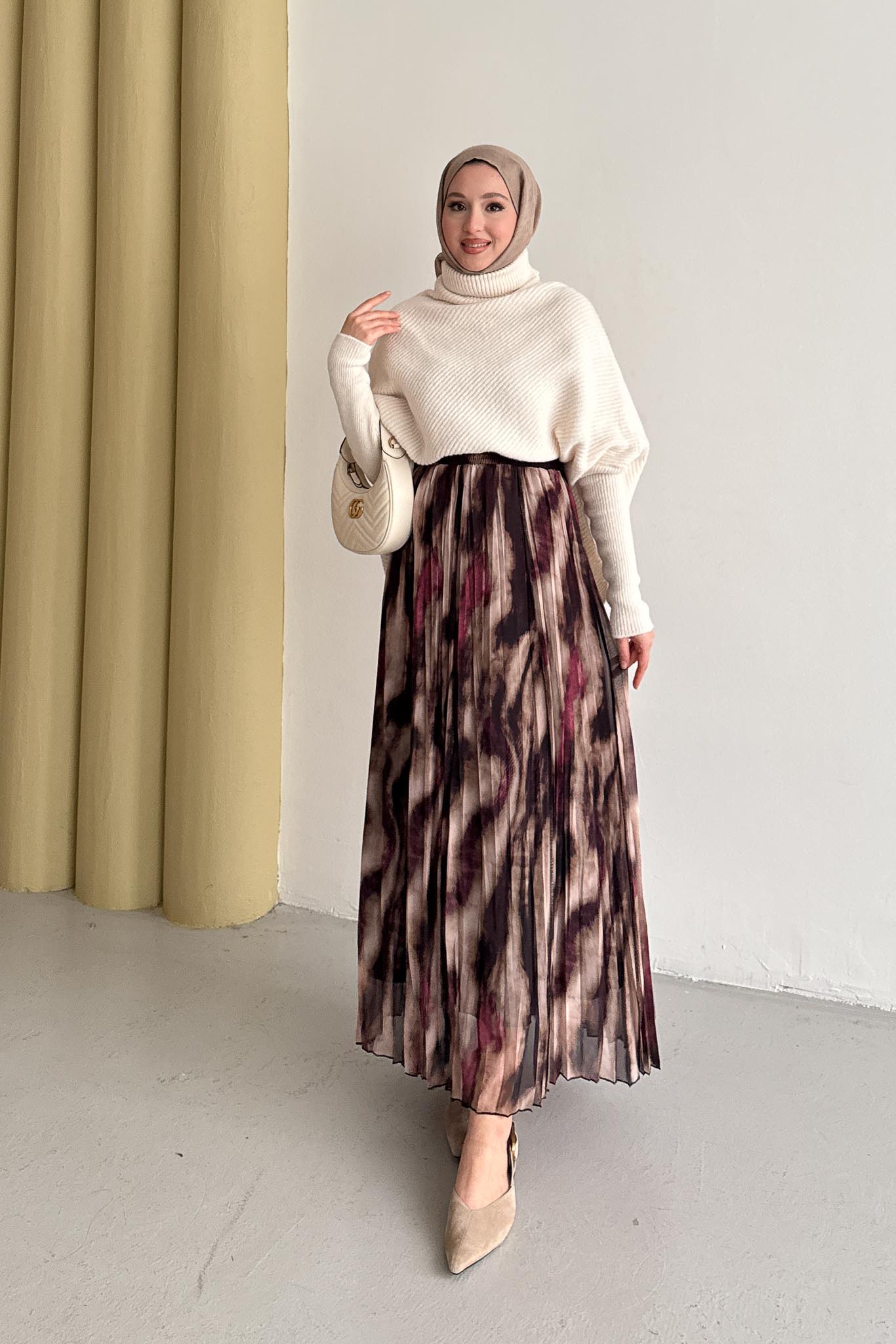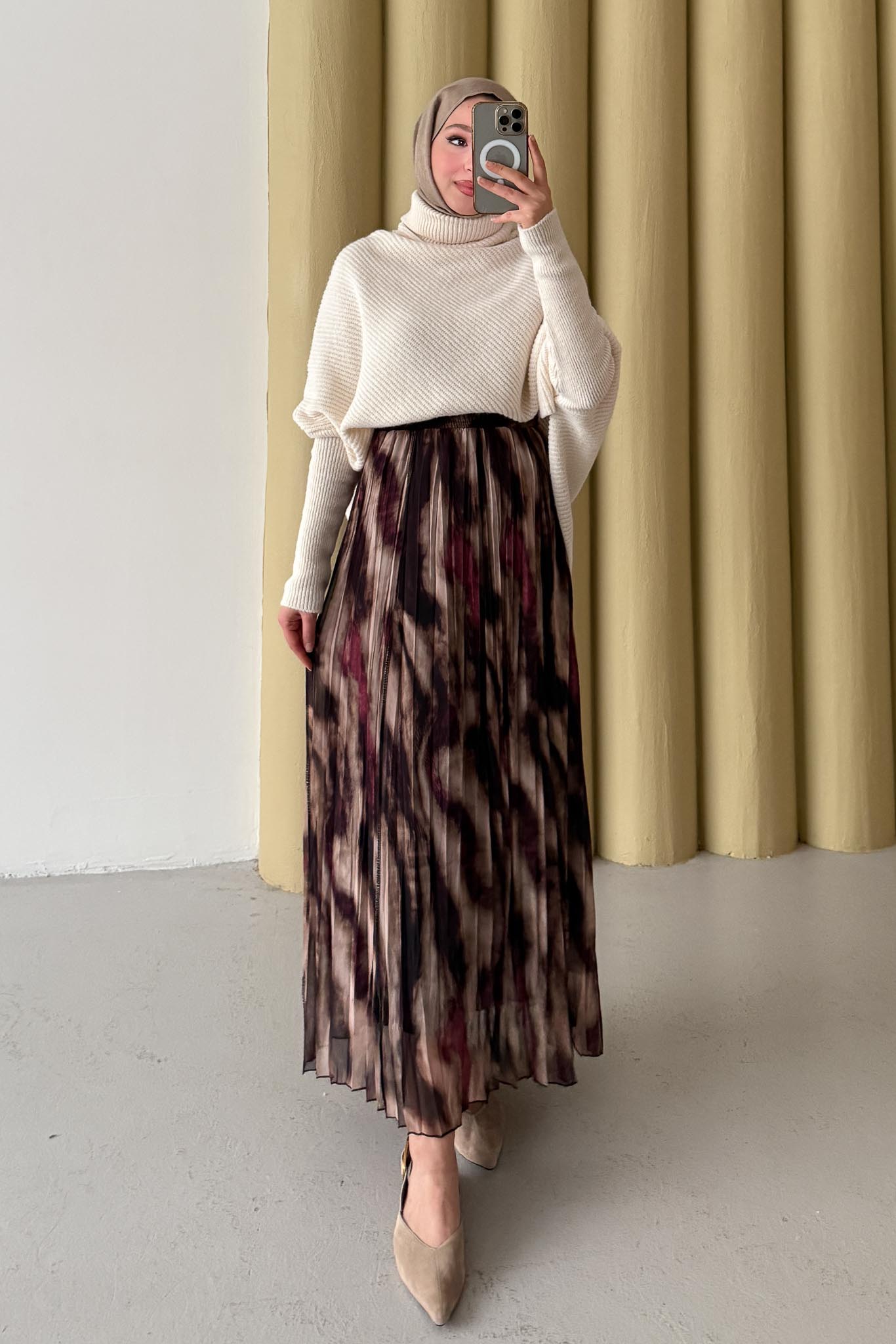 Tablo Desenli Etek Bordo