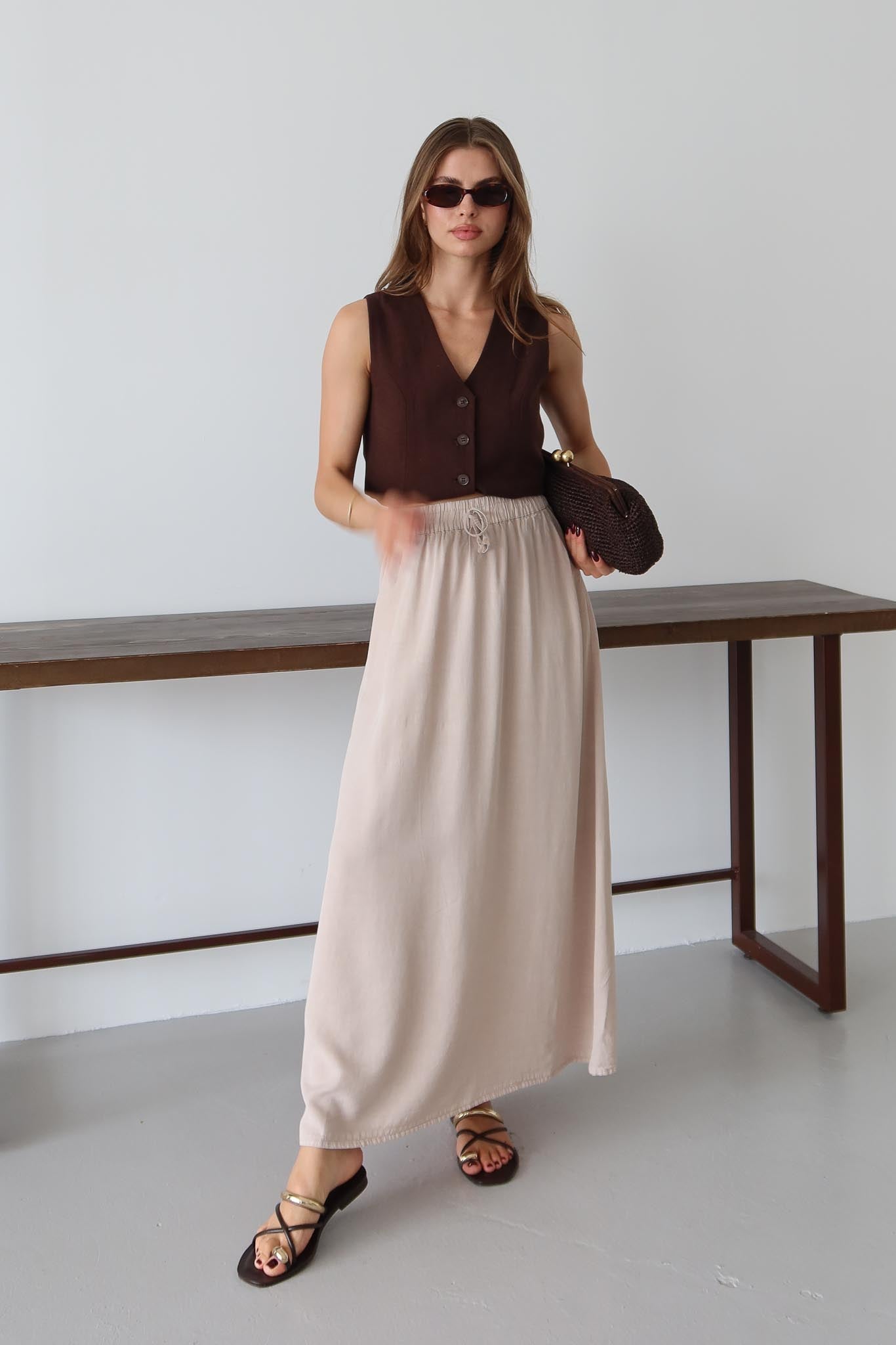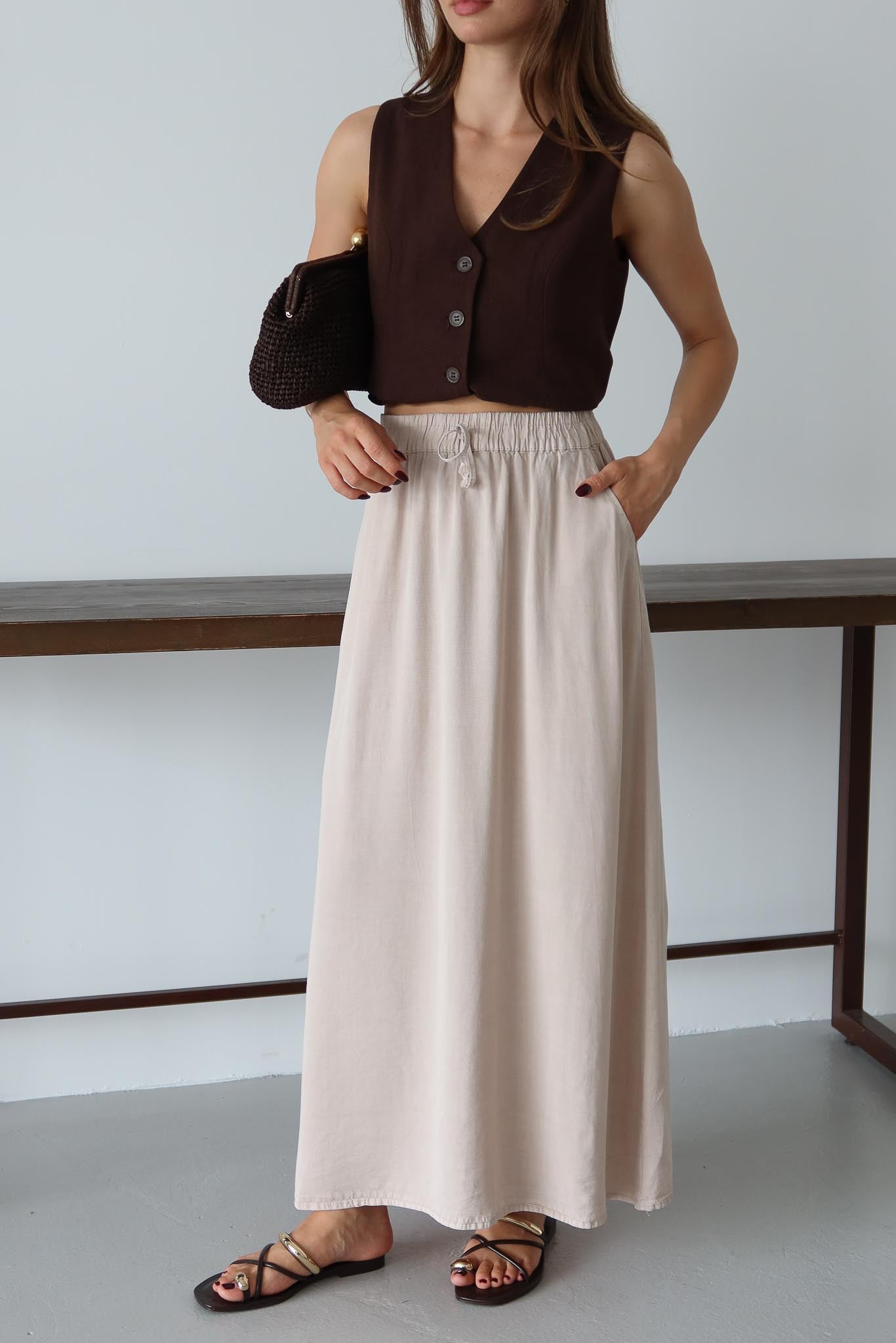 Etek 95 cm, Bel Fermuarlıdır, Hafif kloştur.
