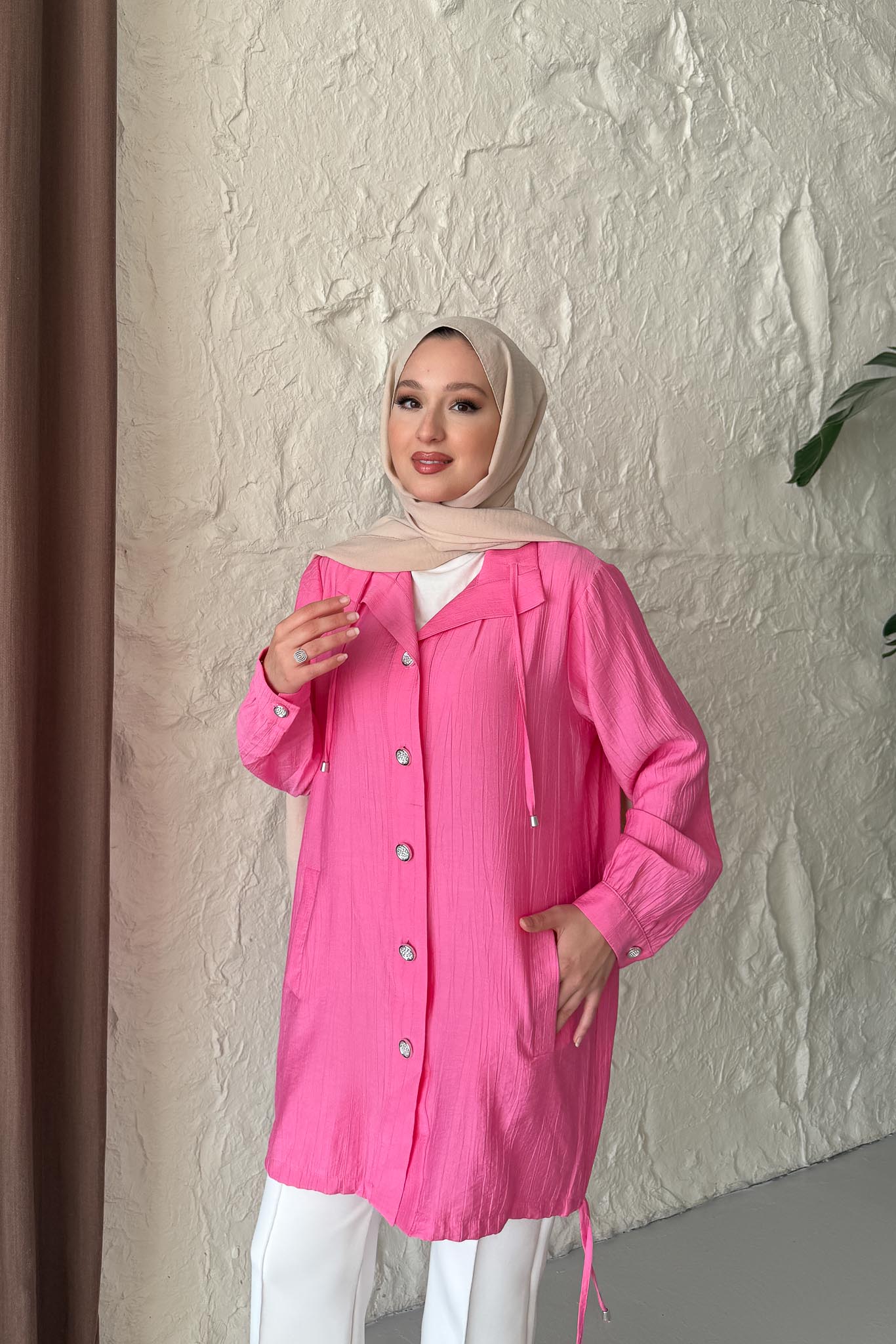 Kol Manşetlidir, rahattır. Boy Ortalama 79 cm dir, Düğmeler taş detaylıdır.
