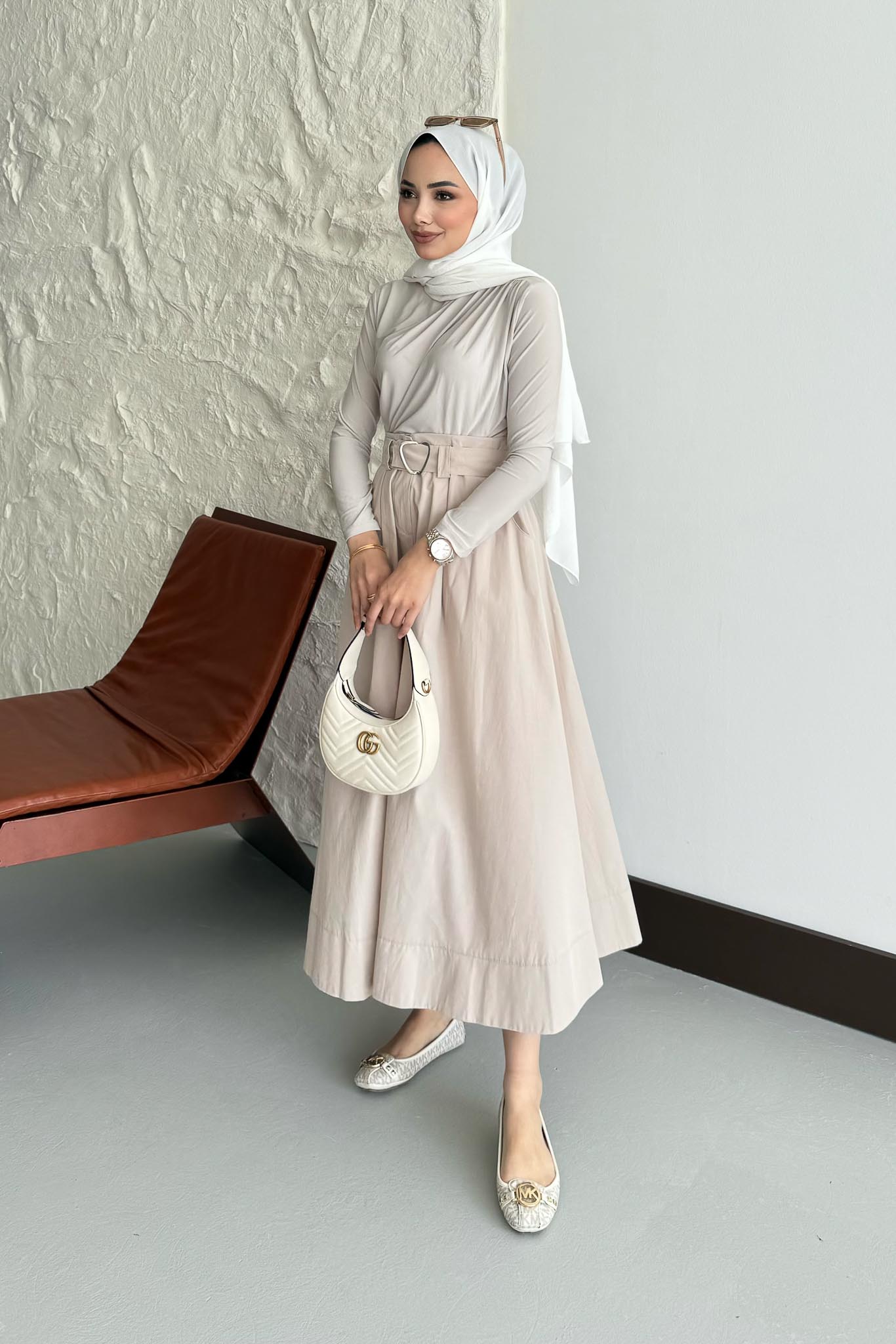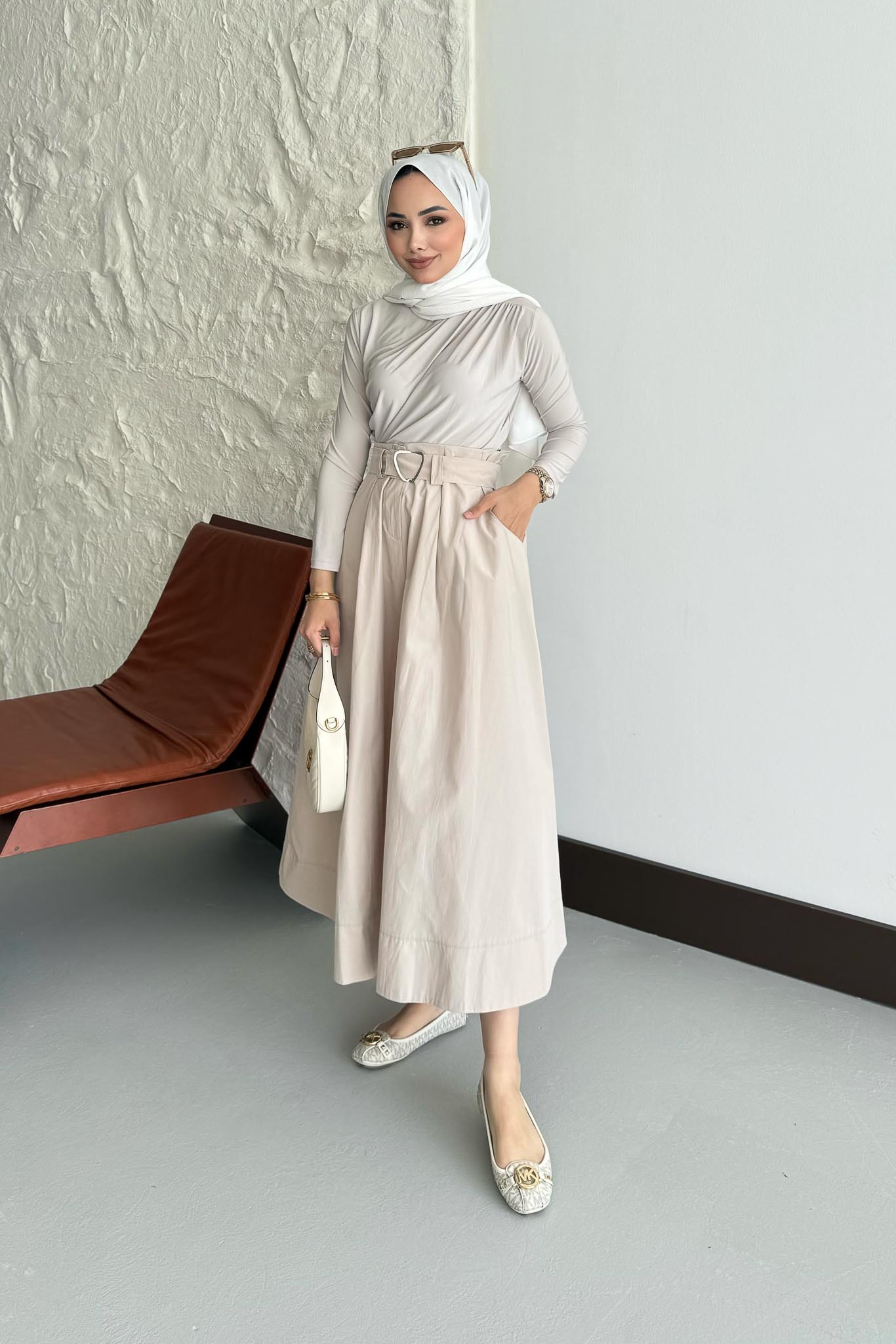 Etek Uzunluk Ortalama 100 cm, Beli Kemerlidir, Kloş formdadır.