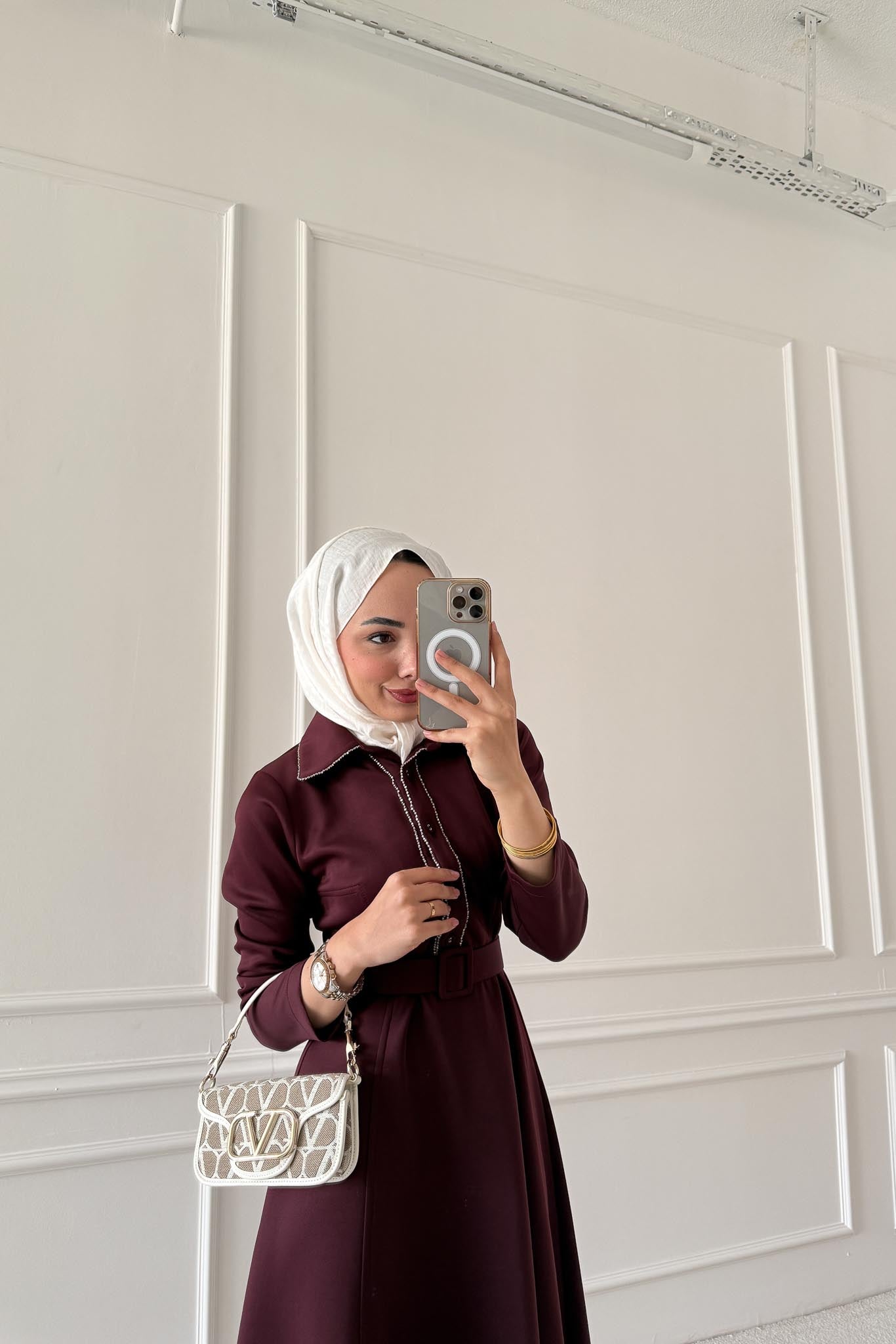 Yaldızlı Elbise Bordo