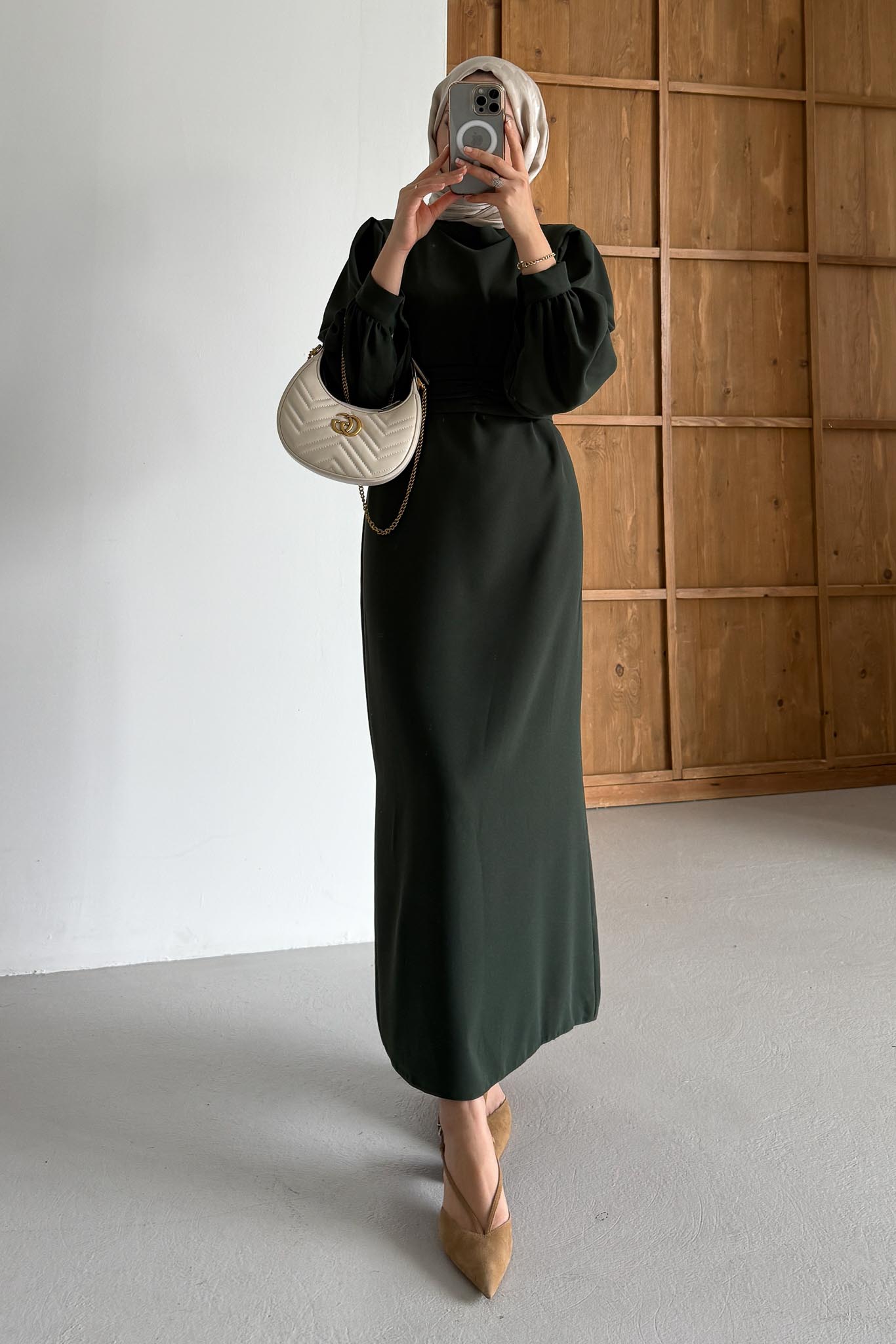 Kol hafif balon kollu ve mansetlidir ve Astarsızdır, İç göstermez ve Slim bir elbisedir, Ortalama 135-138 cmdir.