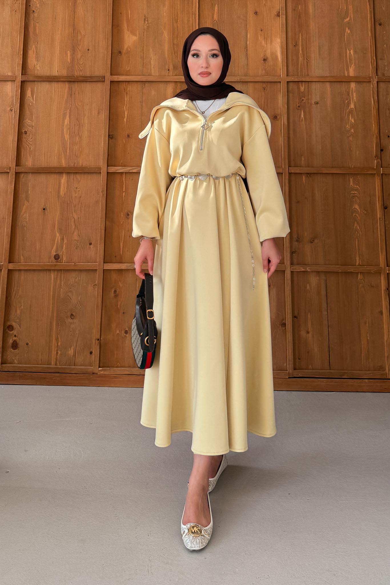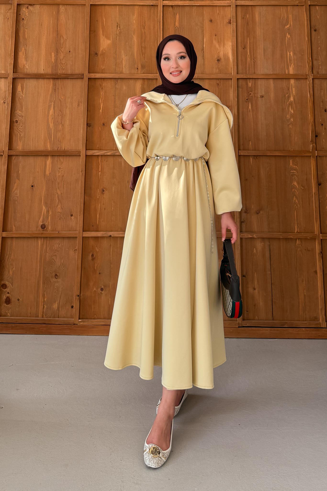 Zincirli Gemici Elbise Sarı
