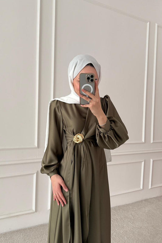 Sofia Broşlu Elbise Haki