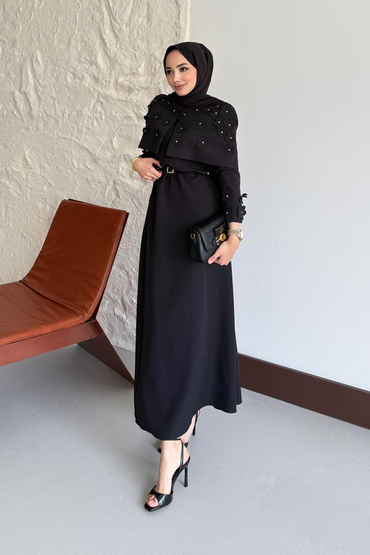 Doqu Pelerin Elbise Siyah
