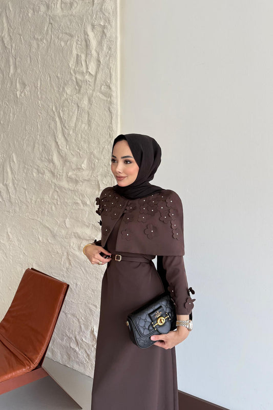 Doqu Pelerin Elbise Kahverengi