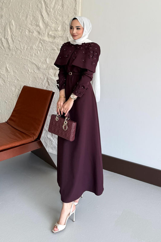 Doqu Pelerin Elbise Mürdüm