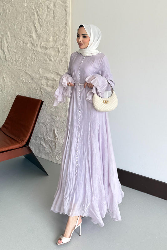 Volan Detaylı Elbise Lila